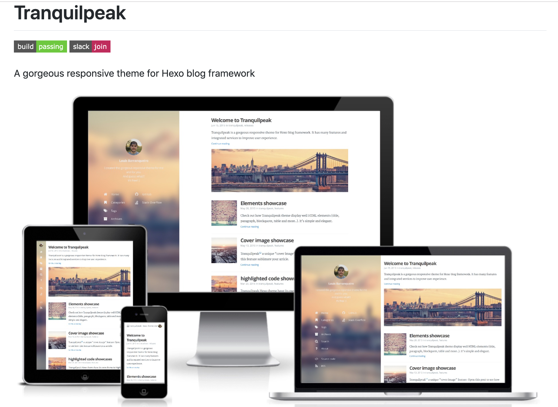 - 重命名下载文件夹为 tranquilpeak,并将其放置于你MyBlog/theme文件夹下